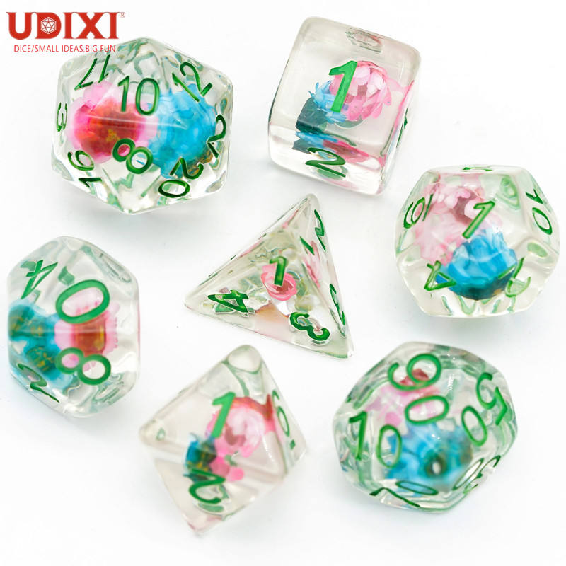 Pour Udixi haute qualité bleu et rose étoile fleur résine RPG donjons et Dragons ensemble de dés en plastique polyédrique résine dés