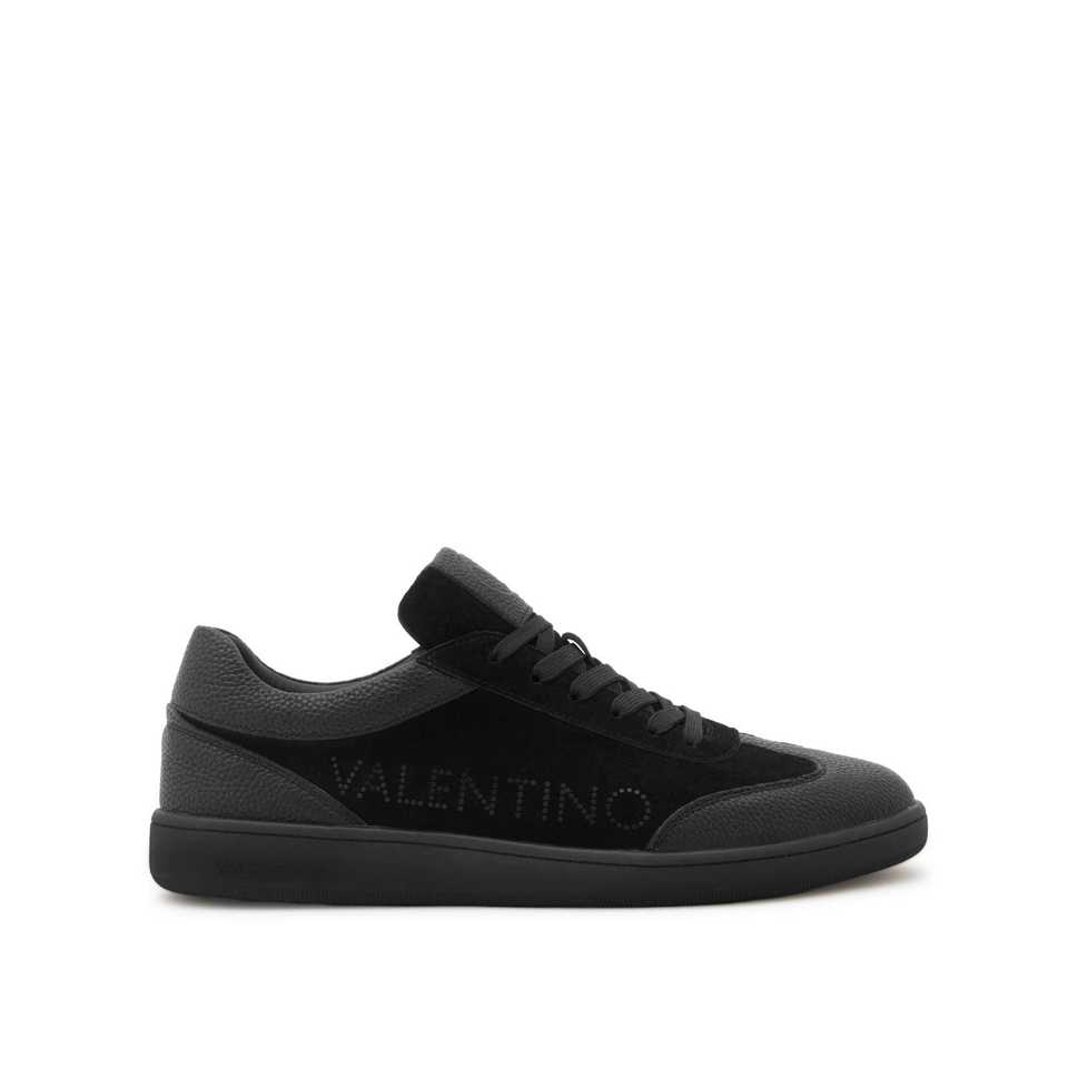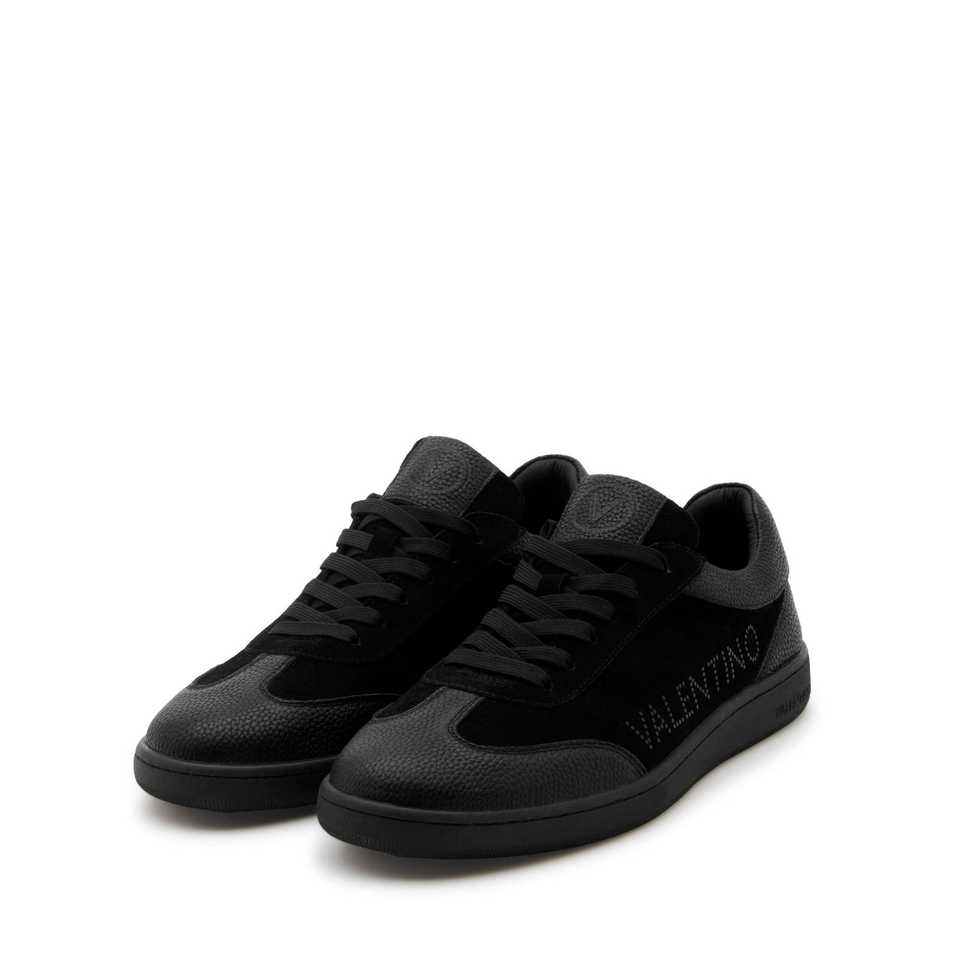 Sneaker unisexe sportive Margot en daim noir avec logo en lettres assorties, fabrication italienne, semelle extérieure en caoutchouc basse, pour la marche