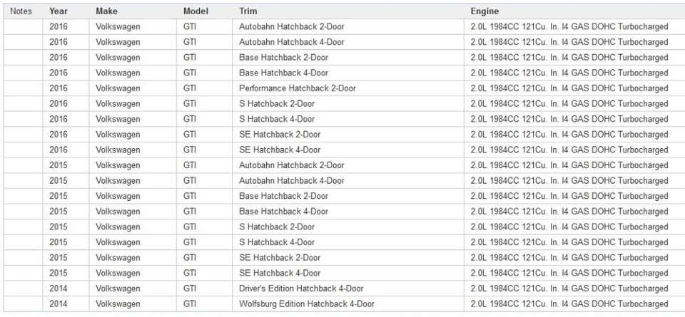 | VW | Golf VII | 2014-2016 |