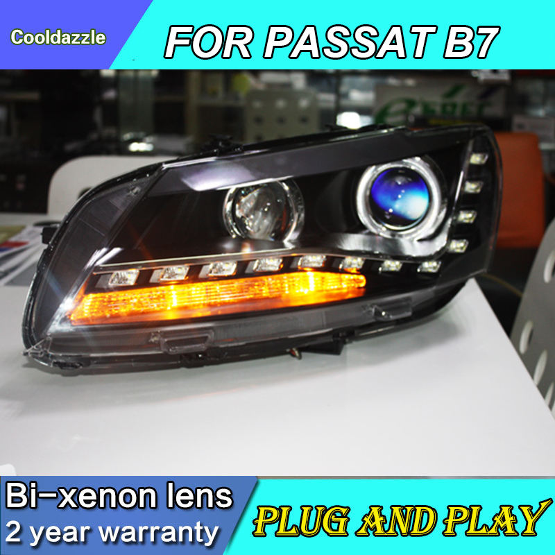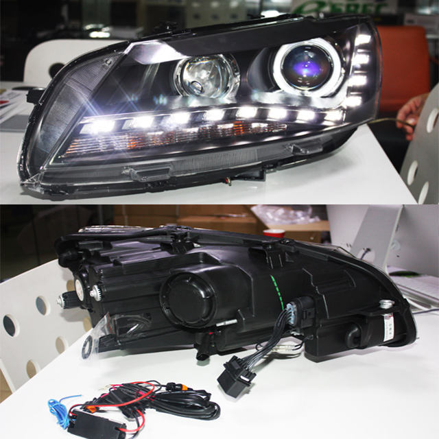 Feu pour Volkswagen Passat B7 2011-2015, phare à LED avec yeux d'ange, feu de jour