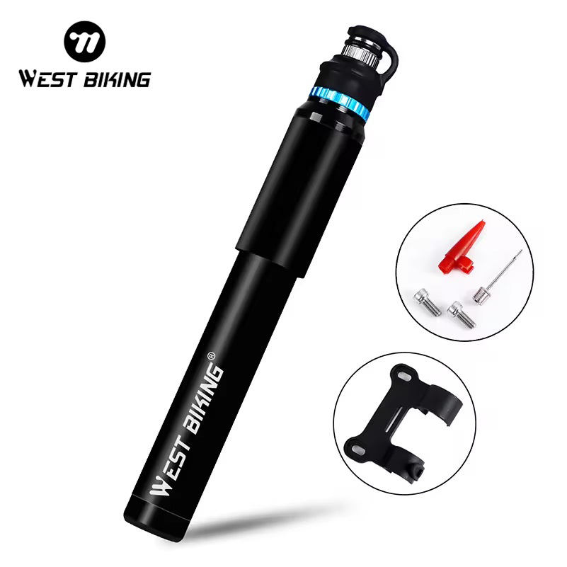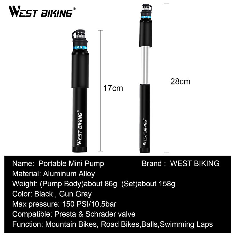 Pompe à main portable WEST BIKING 150 PSI haute pression pour vélo avec valve Presta et Schrader, mini pompe à vélo avec tuyau et poche
