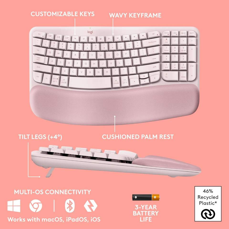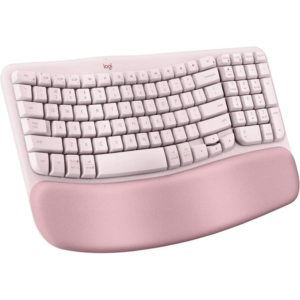 Clavier ergonomique sans fil à membrane plastique For Wave Keys Rose 104 touches avec repose-poignets pour ordinateur personnel