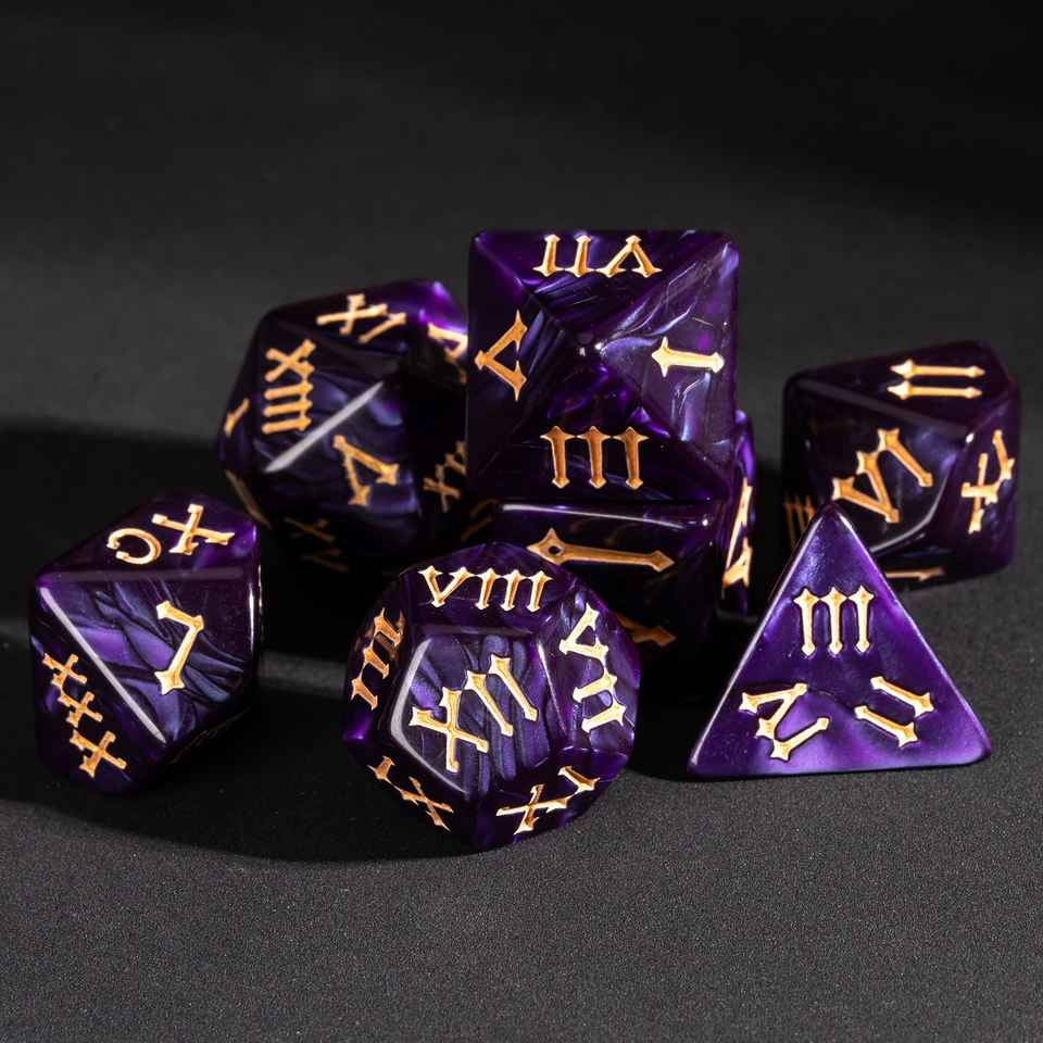 Ensemble de dés polyédriques en acrylique avec chiffres romains et perles violettes pour les jeux de rôle DND, avec dés D12 personnalisés en gros