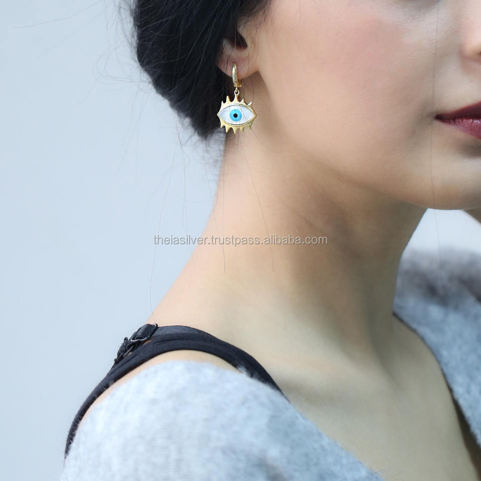For Women Gold Plated Minimal Eye Design Earring in Turkish Wholesale 925 Sterling Silver Jewelry