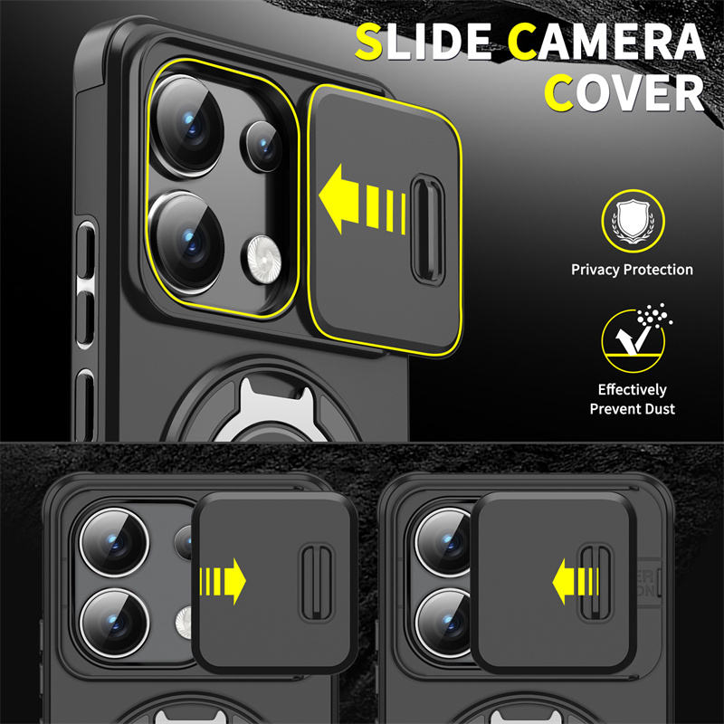 For Xiaomi Poco M6 Pro 4G Case Slide Lens Protect Armor Funda For Pocom6pro Poko Little M 6 Pro M6pro Magnetic Ring Stand Cover