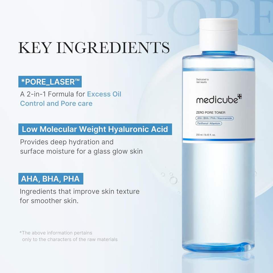 Tonique Zéro Pores 250ml Liquide Exfoliant Hydratant avec AHA & Niacinamide pour Peaux Grasses