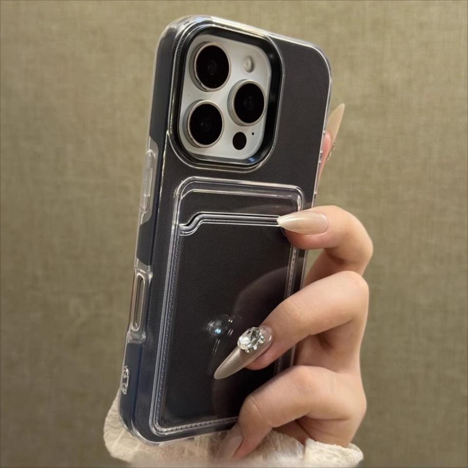 Étui de téléphone transparent deux-en-un avec porte-cartes pour iPhone 16 Pro Max et 14/17, design rigide antichute et emplacement pour cartes