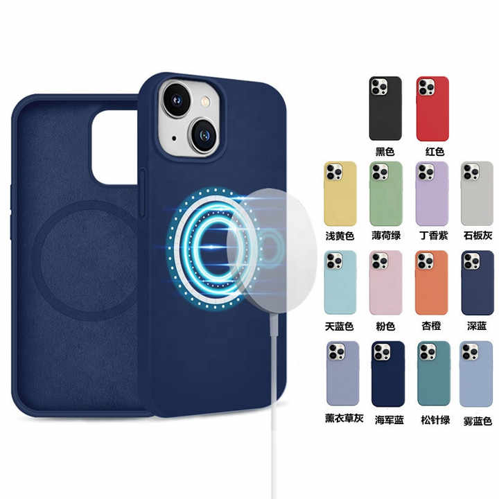 Pour iPhone 14 Pro Max Magsafe liquide étui magnétique puissant iP 13 Pro 12 Mini étuis iP 14 Series sans fil couvercle de chargement