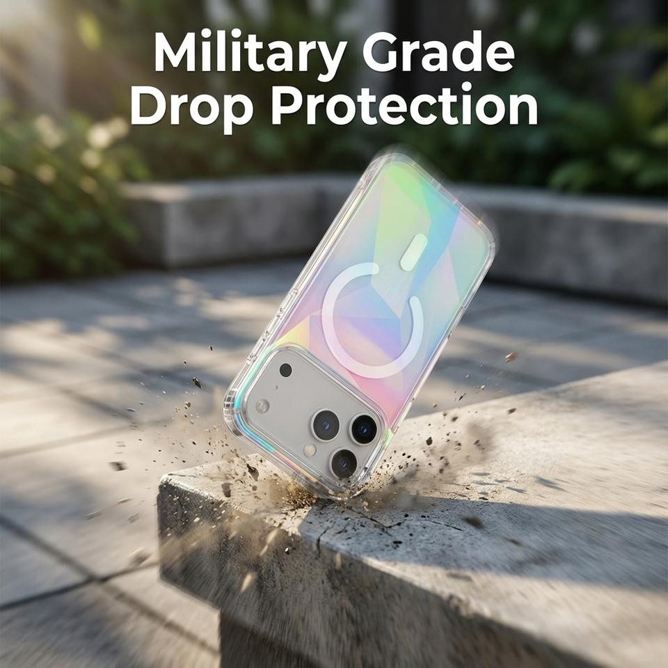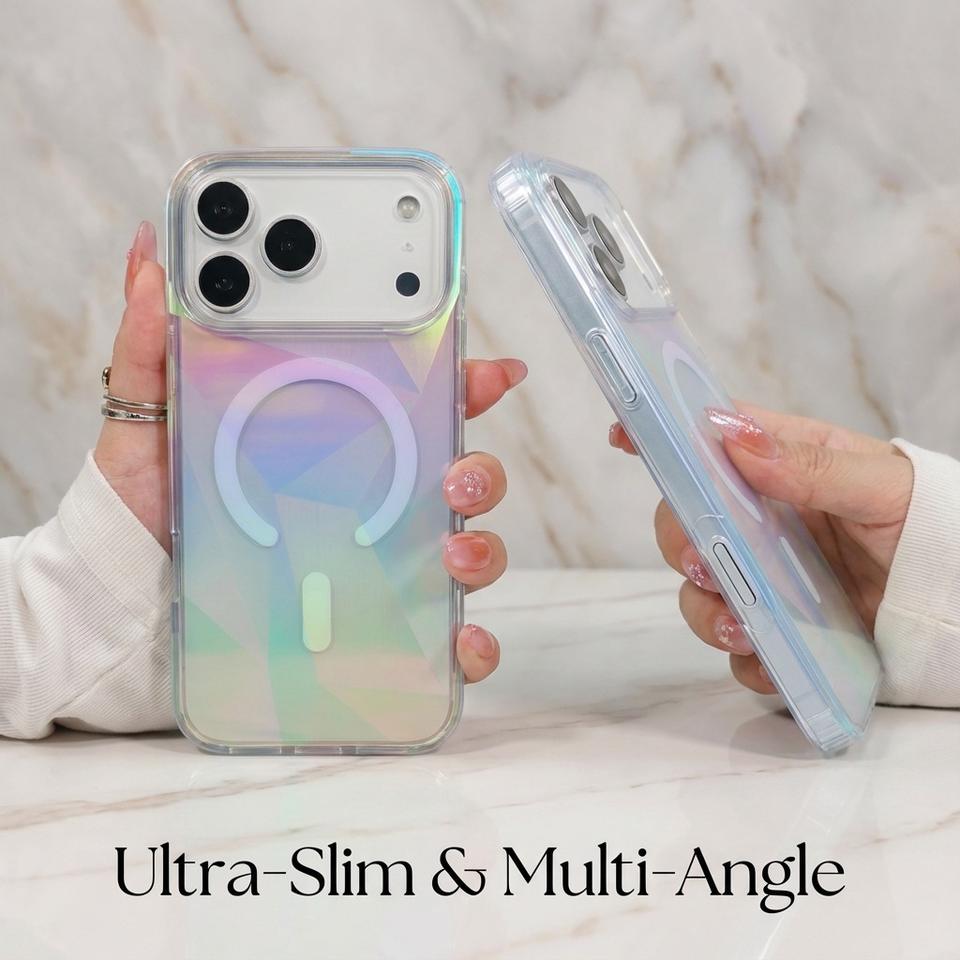 Coque de téléphone magnétique irisée géométrique pour iPhone 17 Pro Max, transparente, scintillante, esthétique féminine, arc-en-ciel, brillante et étincelante