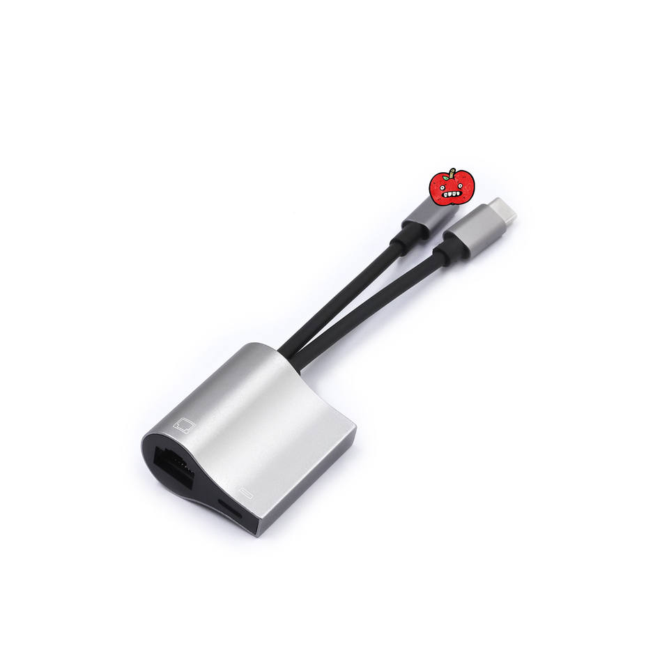 Adaptateur Ethernet 2-en-1 pour iPhone et iPad : Carte réseau avec interface de charge 8 broches/Type C vers RJ45