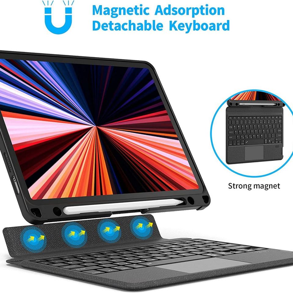 Étui pour iPad 2024 avec clavier, rétroéclairage 7-RGB, Bluetooth 5.1, pavé tactile en PU, étui clavier mobile en cuir avec support pour stylet