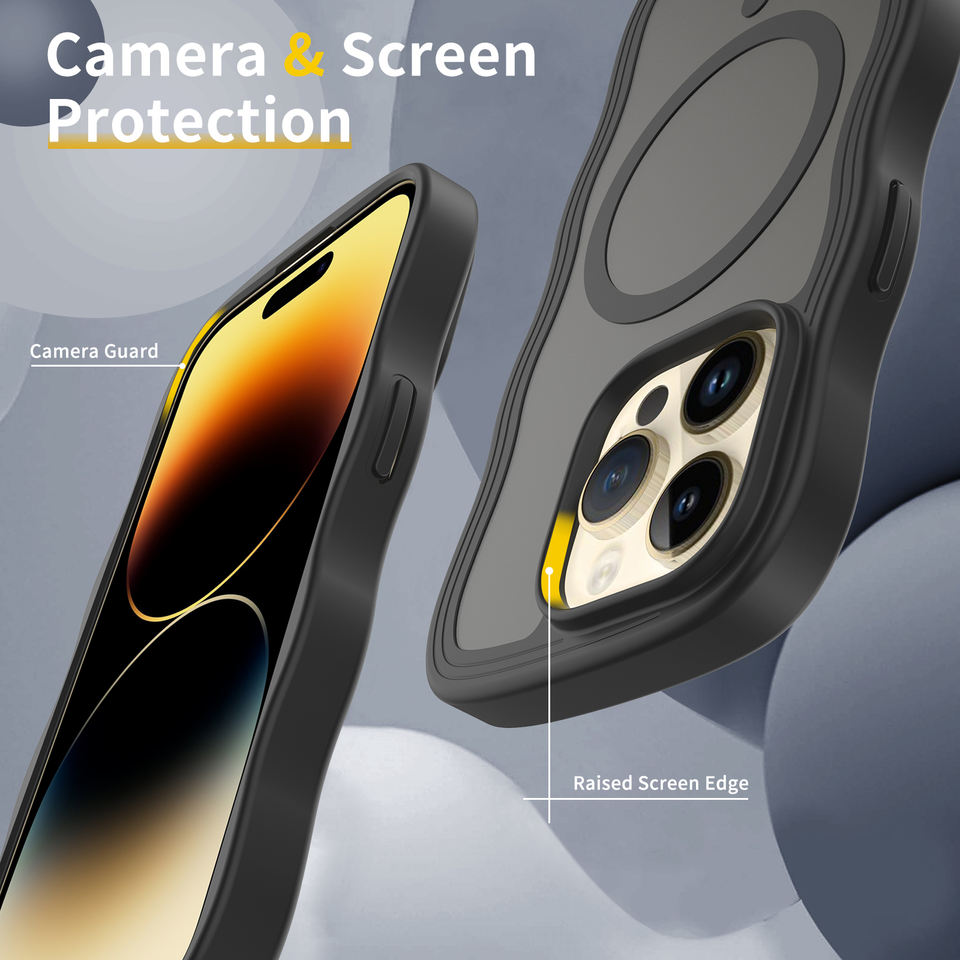 Pour iphone 14 Pro Case Skin Feeling Curly Wave Frame Étui de téléphone de charge magnétique antichoc