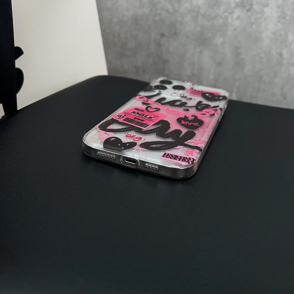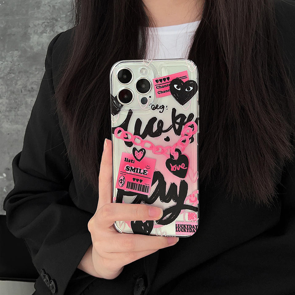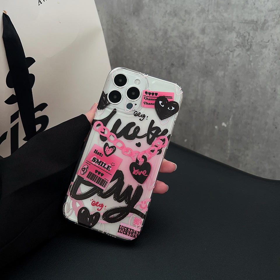 Pour iphone 15 14 13 12 11 Pro Max XR XSmax X XS 7p 8plus Creative TPU Doux et Épicé Chaîne Rose Graffiti étui de téléphone portable