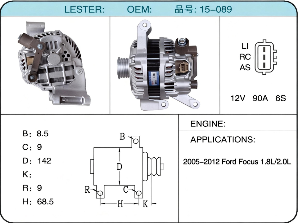 | FORD | FOCUS II | 2005.10-2012.03 | 1.6 TDCi (66KW,90PS) |