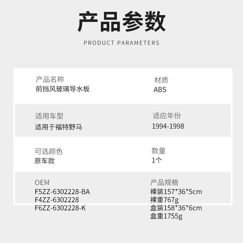Déflecteur de pare-brise Ford Mustang ABS 157x36x5cm 1994-1998 Plaque de récupération d'eau pour fenêtre de voiture