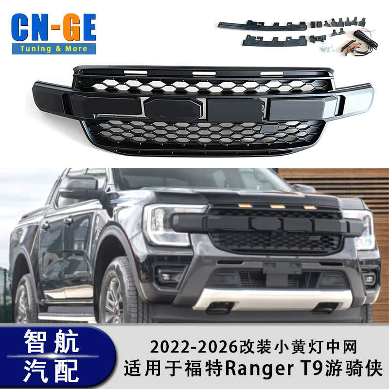 Calandre avant modifiée avec feux pour Ford Ranger T9 23-26, en plastique ABS noir mat, compatible avec le pare-chocs