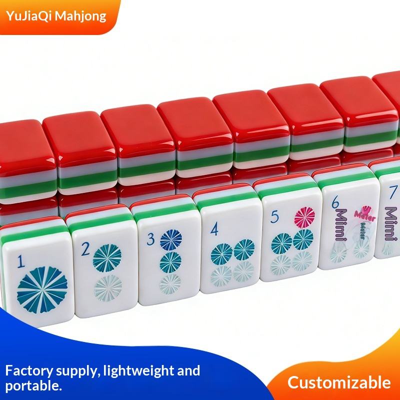 Mahjong américain portable de voyage, 160 tuiles, en acrylique à quatre couches, avec assortiment de couleurs étrangères, à assembler à la main