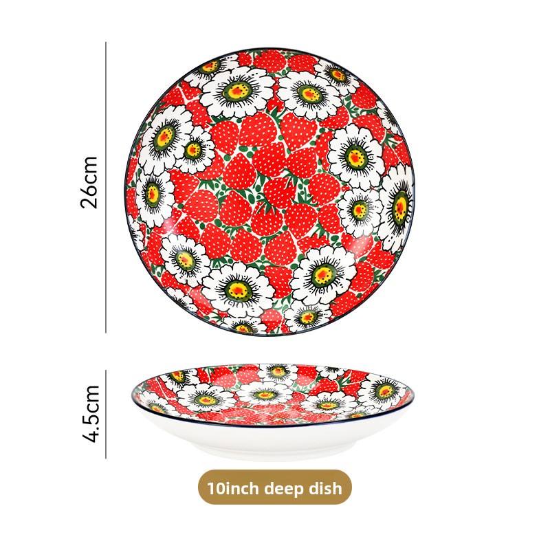 Vaisselle créative transfrontalière en céramique artisanale vintage, motif fraise polonaise colorée, pour le commerce extérieur : Bol à riz, Bol à salade, Assiette