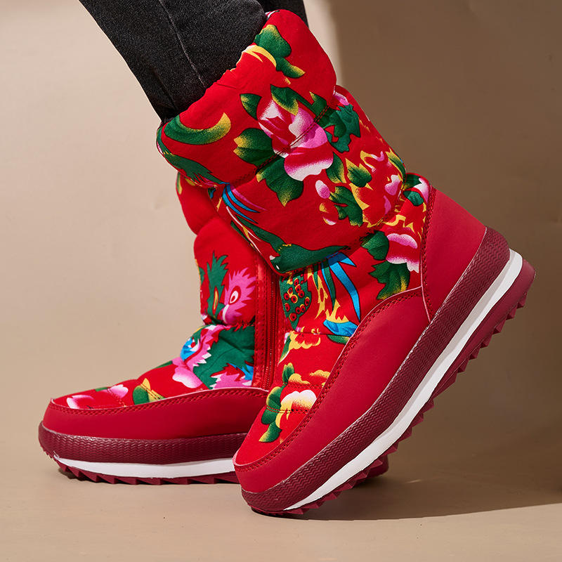 SélectionnerCouleur: Bottes de neige chaudes style ethnique nord-est à fleurs noires