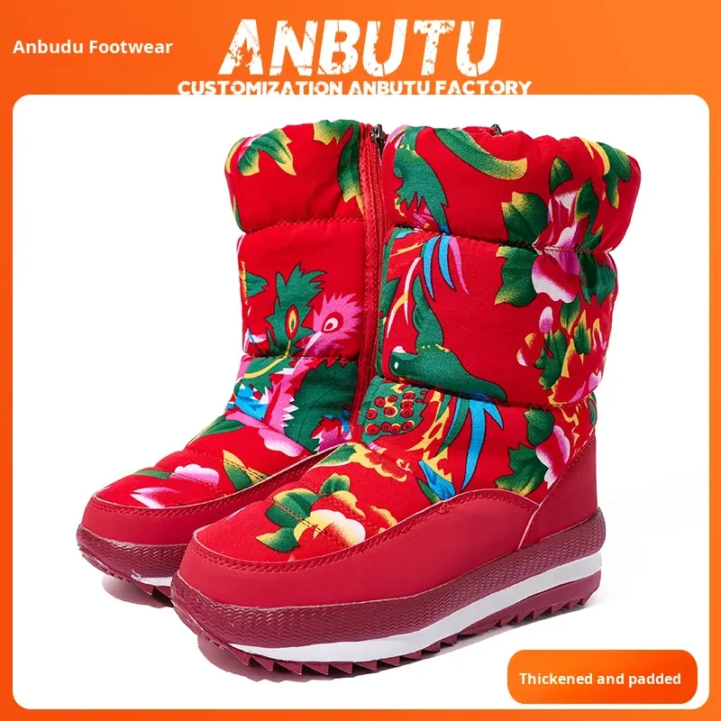 Bottes de neige hautes de style ethnique pour le commerce extérieur, doublées de polaire, épaisses, bottes de grande taille du nord-est, chaussures chaudes pour l'extérieur, hiver