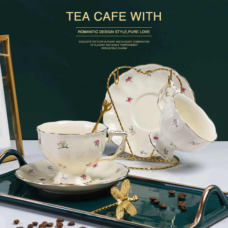 Ensemble de tasses à café de style européen pour le commerce extérieur, avec tasses et assiettes en céramique
