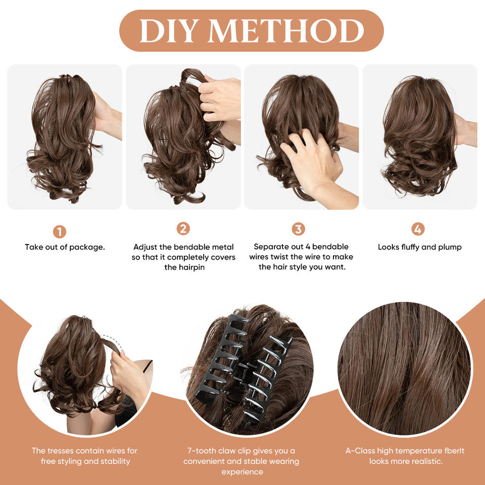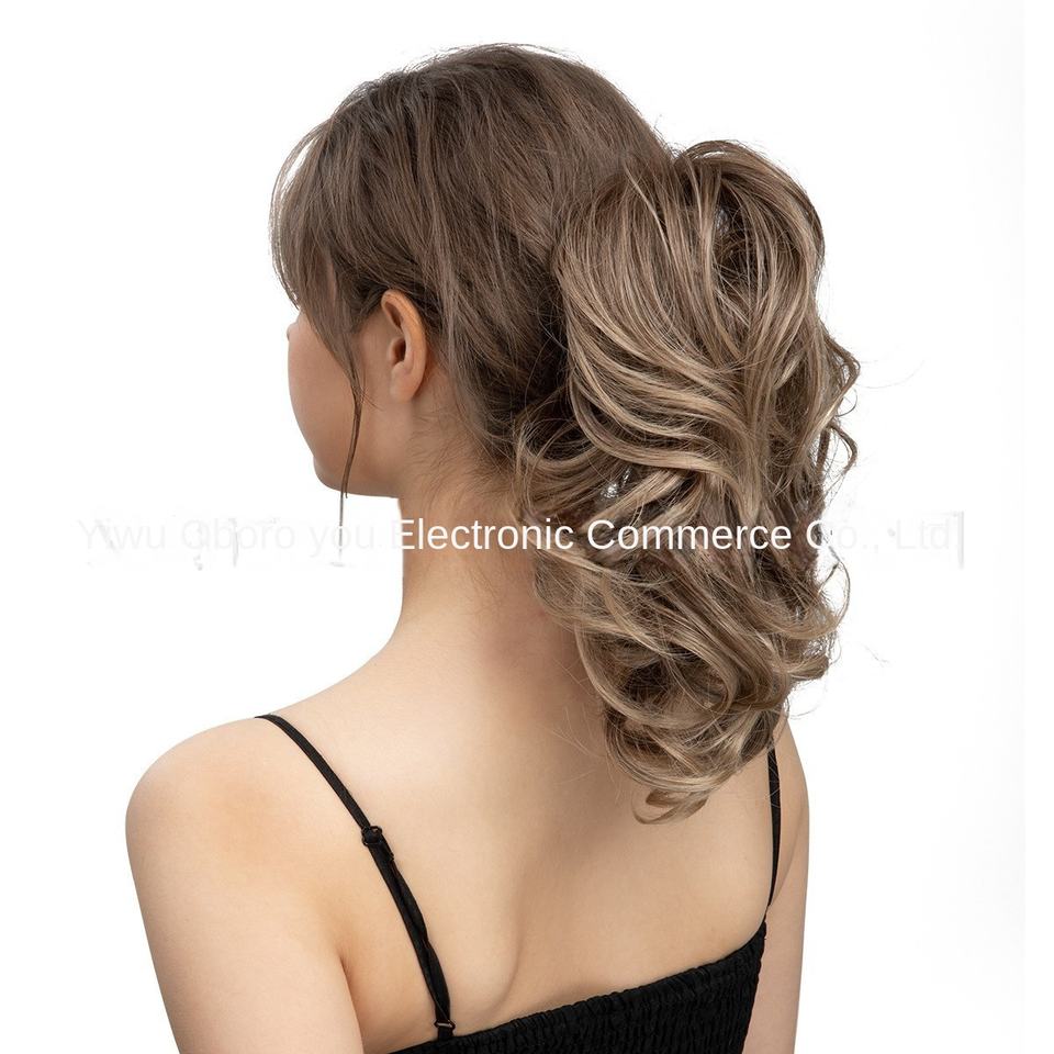 Perruque en soie haute température pour le commerce extérieur, pince à cheveux, queue de cheval courte, boucles en fibre chimique ajustables pour femmes, désordonnée, moelleuse, naturelle