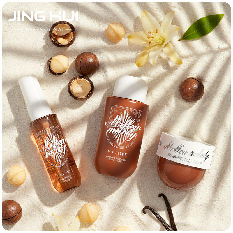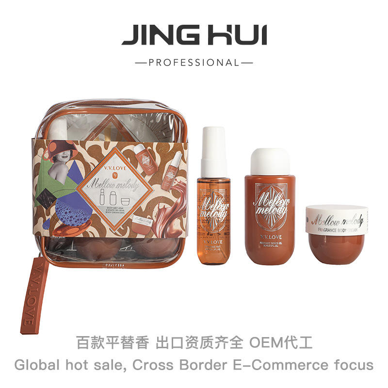 Ensemble de voyage de parfums pour femmes, vaporisateur pour le corps, gel douche, crème pour le corps, parfum, taille standard, en stock, vente chaude pour le commerce extérieur