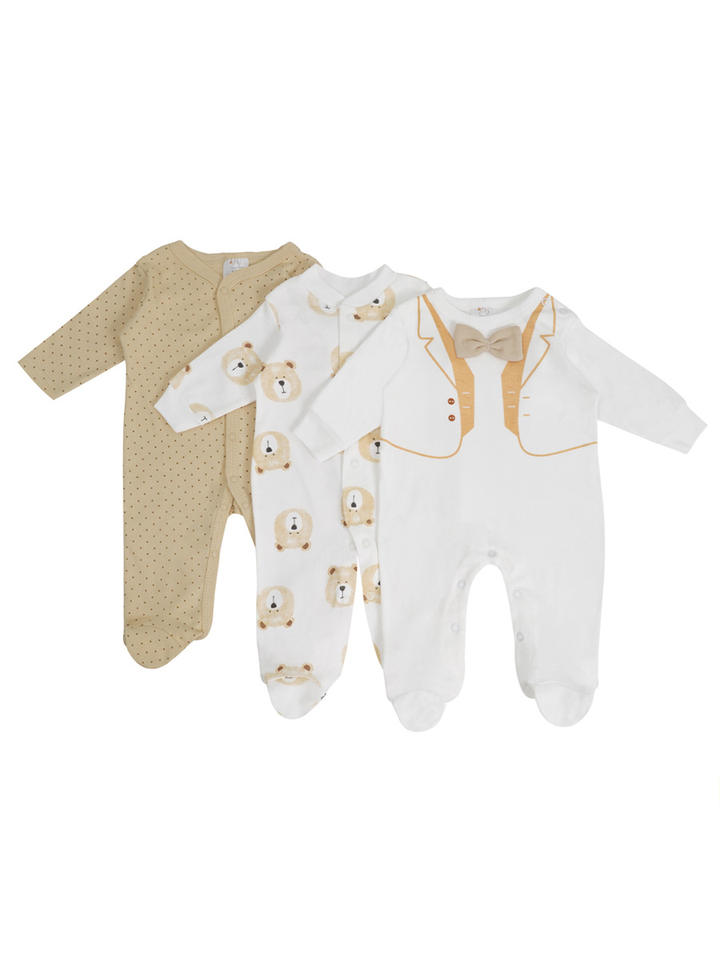 Vêtements de bébé en coton à trois pièces pour le commerce extérieur, motif de dessin animé, longs, à fermeture simple boutonnage, pour ramper, base de chemise, pyjama, pieds