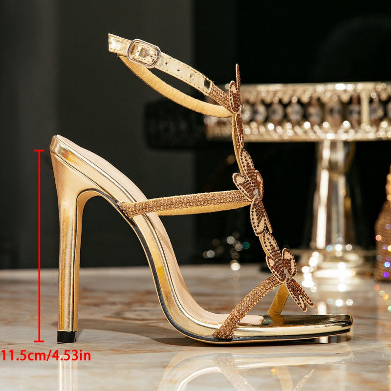 Sandales à talons hauts pour femmes, ornées de fleurs en strass et de diamants scintillants, à bride unique, sexy, à bout ouvert, nouvelle collection été, pour le commerce extérieur
