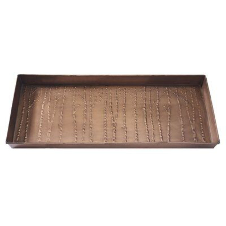 Plateau de rangement pour bottes en métal à motif forestier, finition cuivre antique, en fer, pour entrée et buanderie, tapis à chaussures, protection de sol intérieur et extérieur