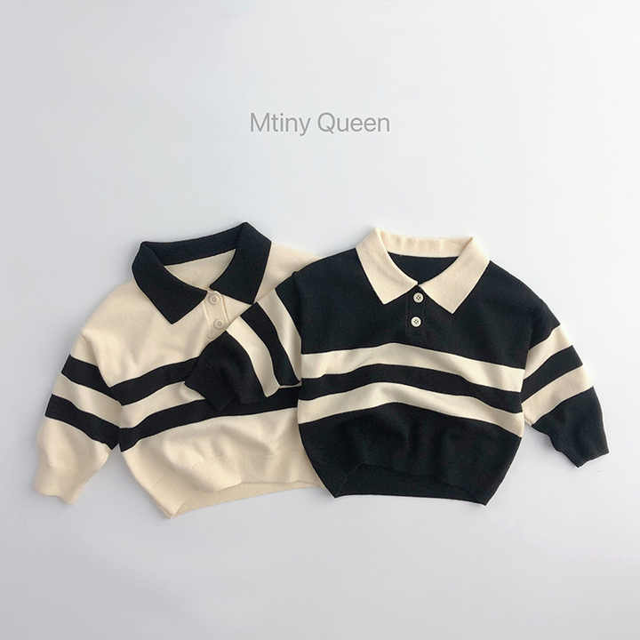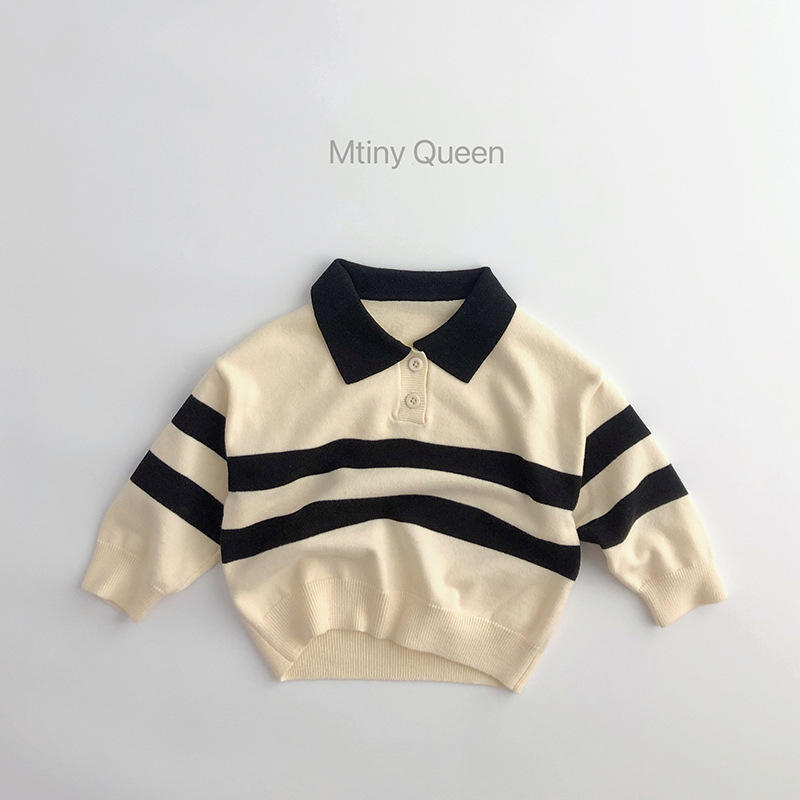 Pull pour enfants style forêt printemps-automne, haut décontracté en tricot à col rabattu rayé à deux boutons pour bébés garçons et filles