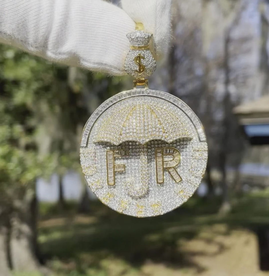 Forever Rich Unique Design Parapluie Argent Sac Bail Glacé Lettre Diamant Pendentif Bijoux Moissanite Pierre pour Fêtes Mariages