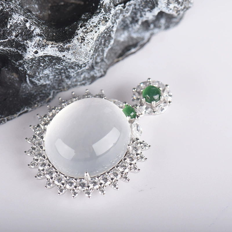 Pendentif Breloque Classique en Forme de Cucurbitée en Argent 925 Incrusté de Jadeite Forever Star pour Anniversaire Vente en Gros