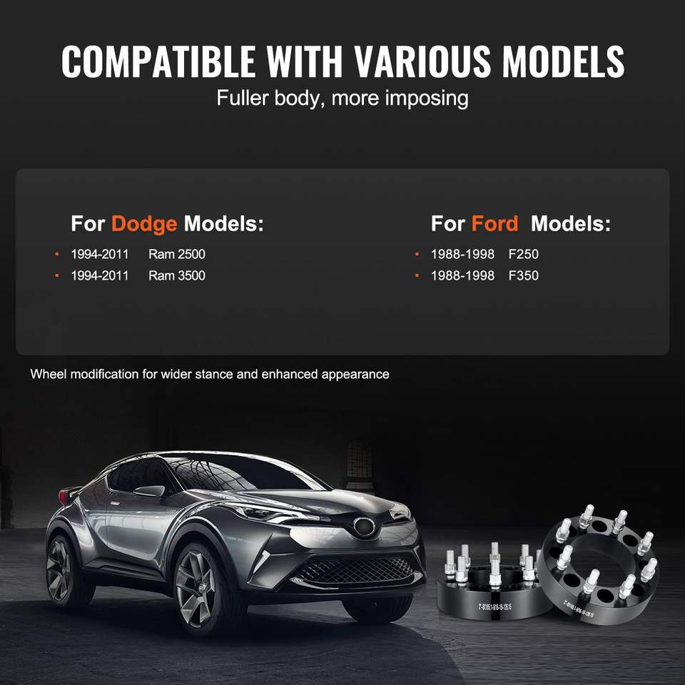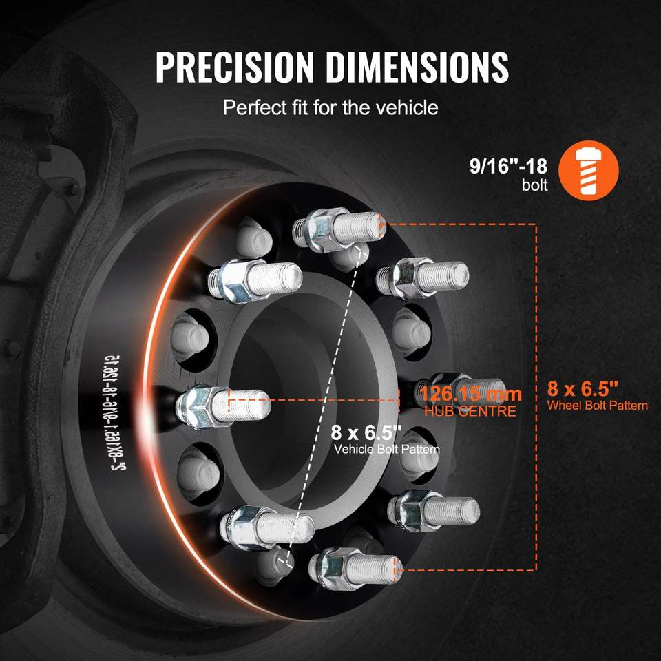 Adaptateurs et entretoises de roue forgés 8 trous 2 po (50 mm) entretoises 8 po x 6,5 po compatibles Dodge Ram, moyeu centré 126 mm, goujons 9/16 po-18