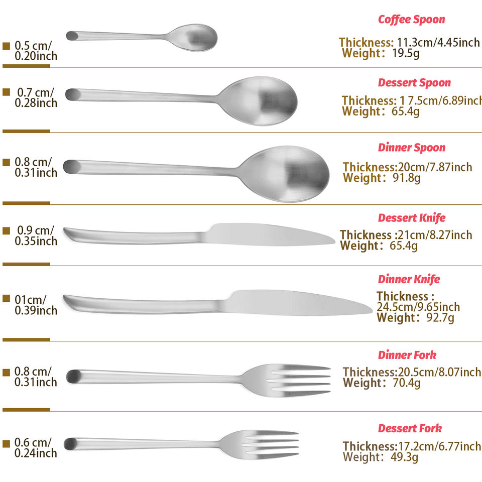 1 Set Include:1 dinner knife,1 dinner spoon,1 dinner fork,1 teaspoon,1 salad fork