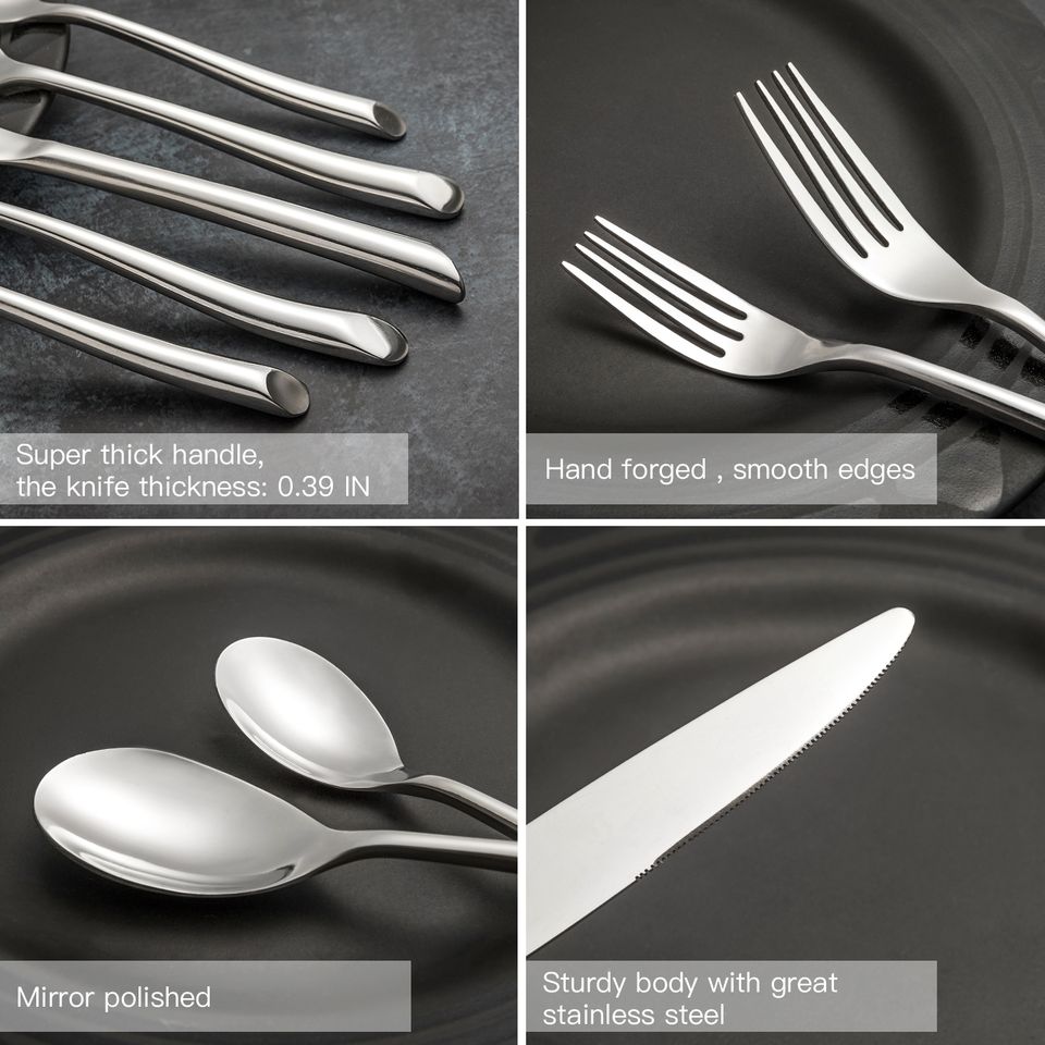 Ensemble de couverts en acier inoxydable forgé, argenté, pour mariage, fourchettes, couteaux, cuillères, vaisselle