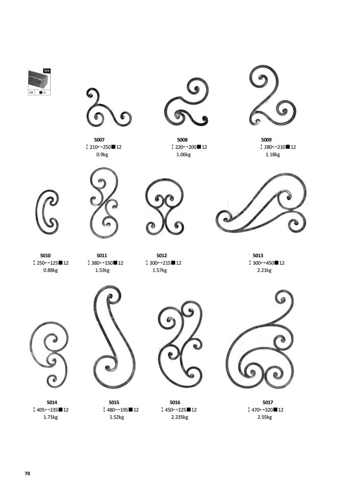 Volutes à noyau en acier forgé Éléments en fer forgé Pièce détachée pour balustrade de main courante de clôture de portail