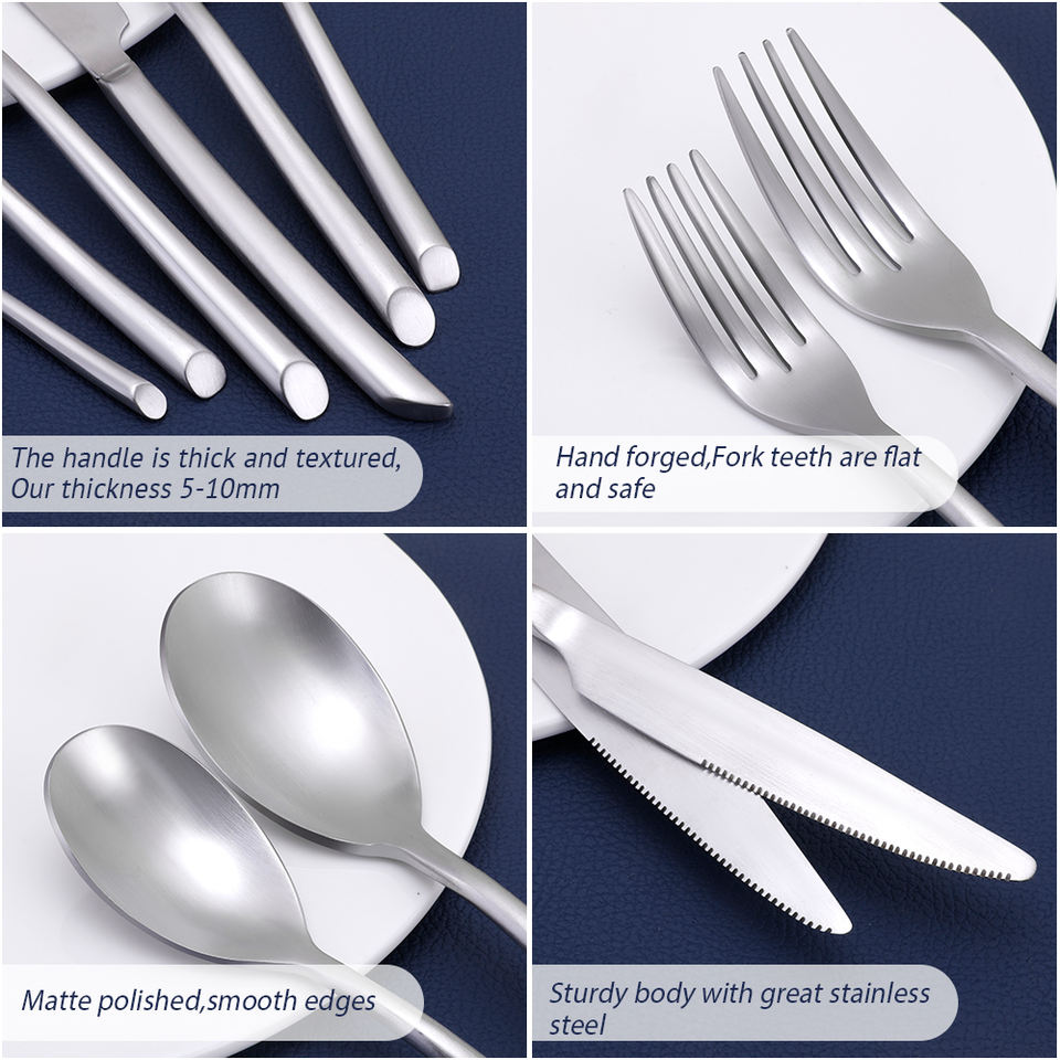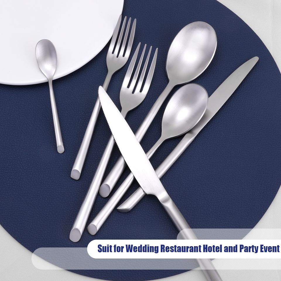 1 ensemble comprend:1 couteau de table, 1 cuillère de table, 1 fourchette de table, 1 cuillère à café, 1 fourchette à salade
