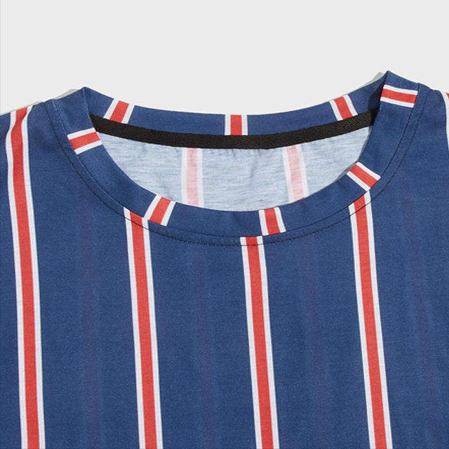 T-shirt d'été formel pour homme, coupe ajustée, rayé, col rond, anti-plis, manches courtes, en soie/coton, teint en pièce, style urbain