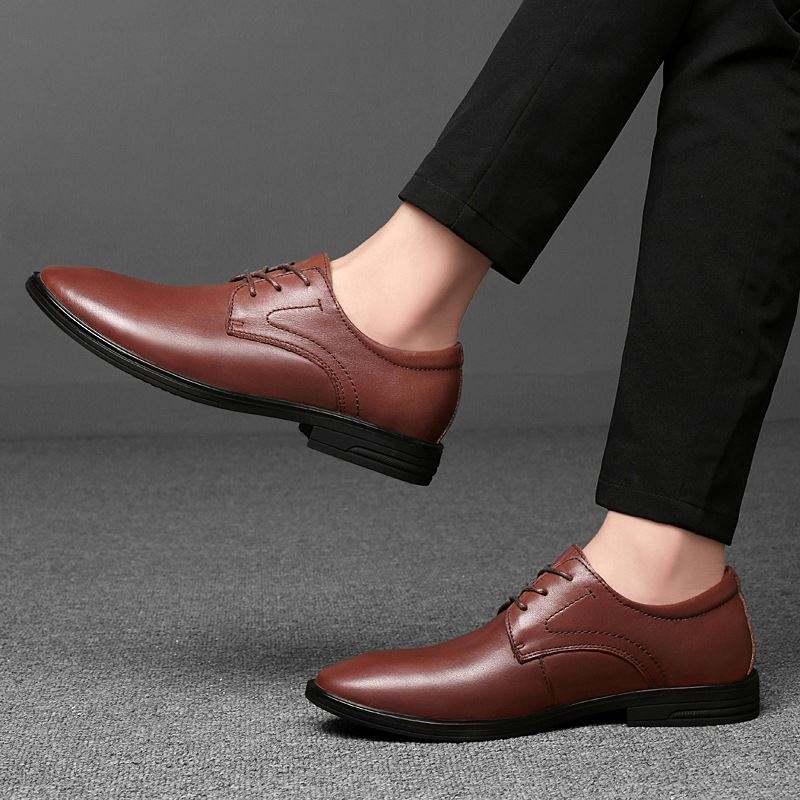 Chaussures habillées formelles pour hommes à bout carré, en cuir, à lacets, pour mariage et bureau, saison printemps, antidérapantes et respirantes