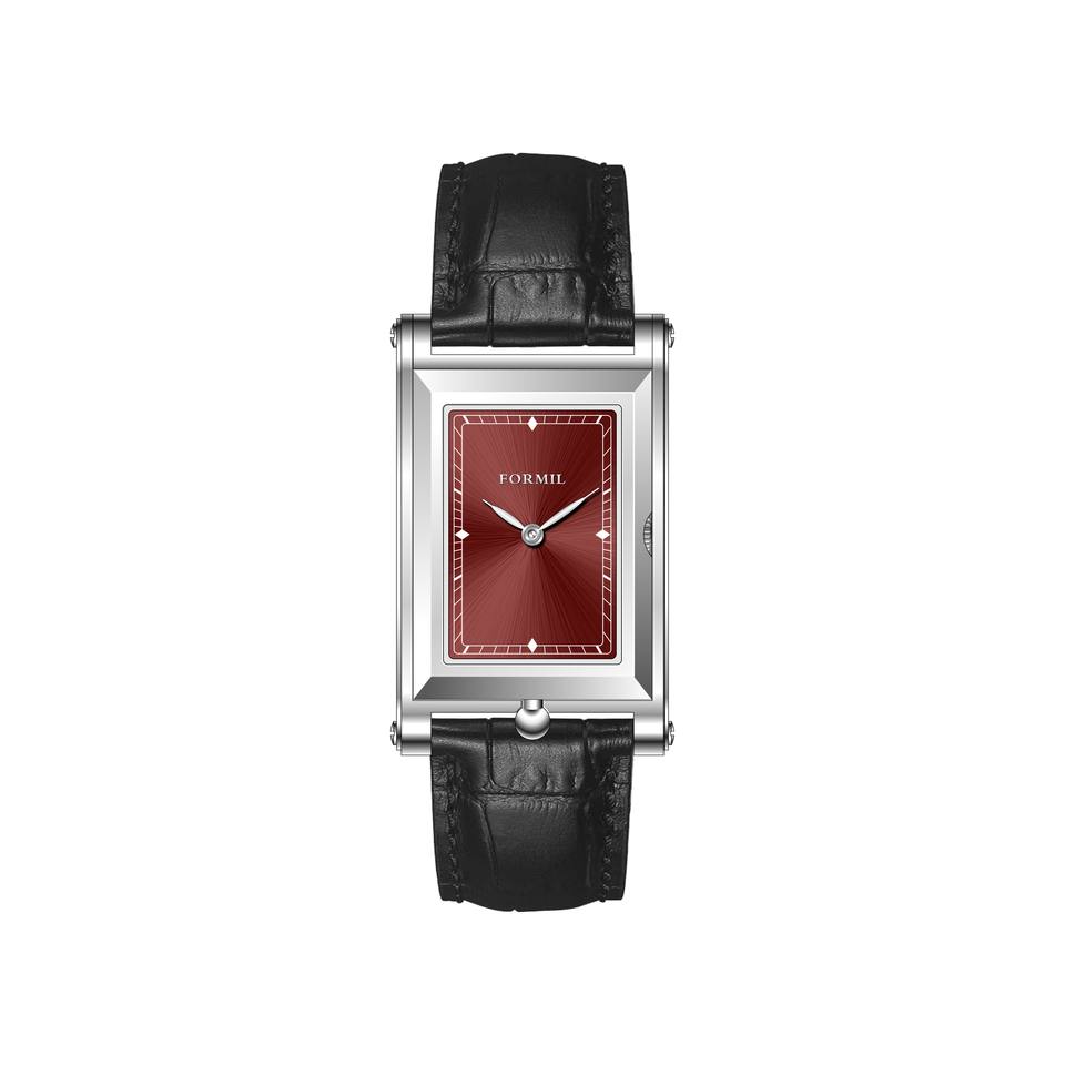 Montre à quartz de luxe Formil FL5790 avec boîtier en acier inoxydable 316L, forme carrée, bracelet en cuir unisexe, résistante à l'eau 3BAR