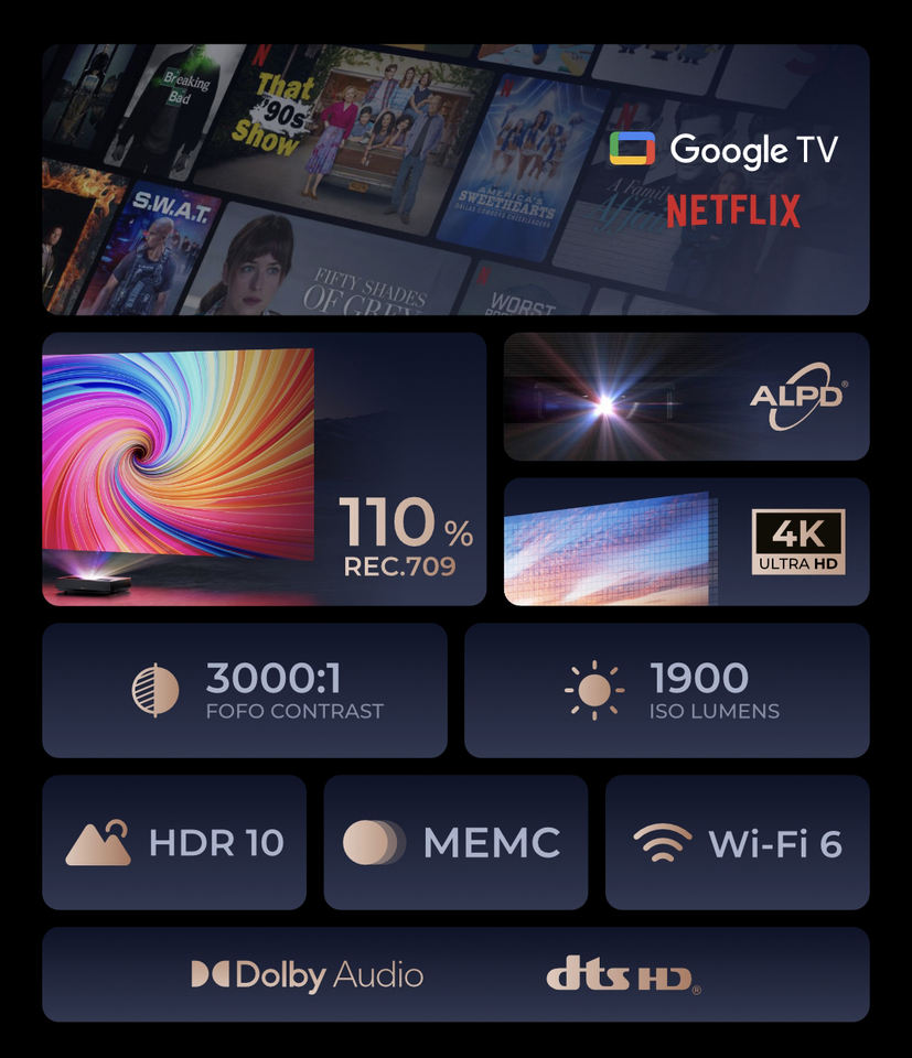 Projecteur laser DLP à ultra courte focale Formovie Fengmi Cinema Edge, 4K natif, 1900 lumens ISO, pour cinéma maison intelligent