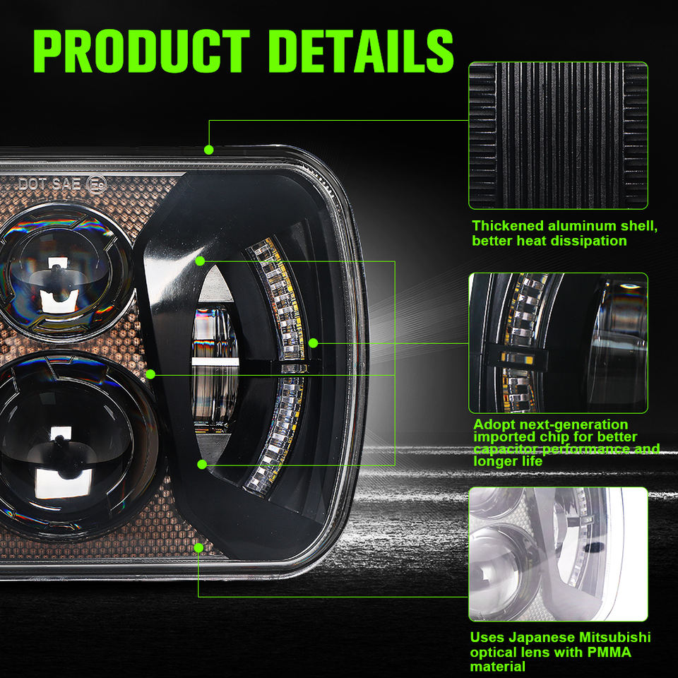 Lampe frontale à tête Led Camion 7 Polegada pour voiture pour Jeep Cherokee 1997 Toyota Hilux