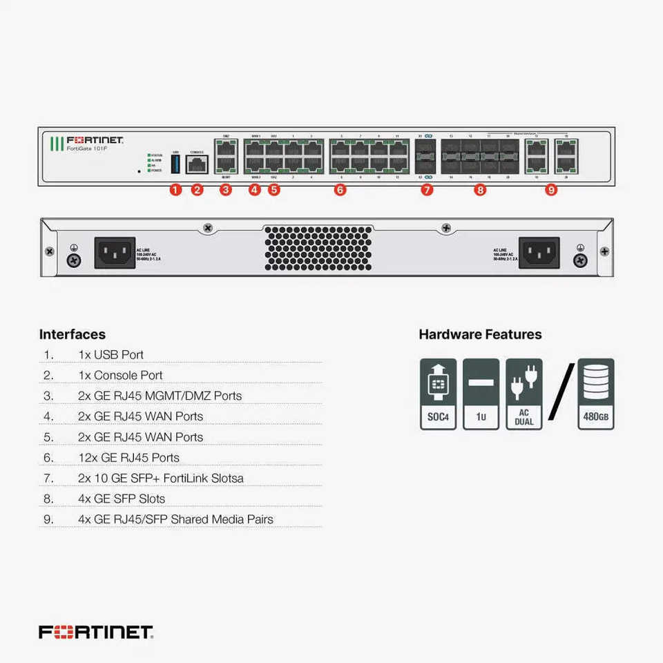 Interfaces réseau:7x GE RJ45 1x GE/POE-PD RJ45 et 2x GE SFP