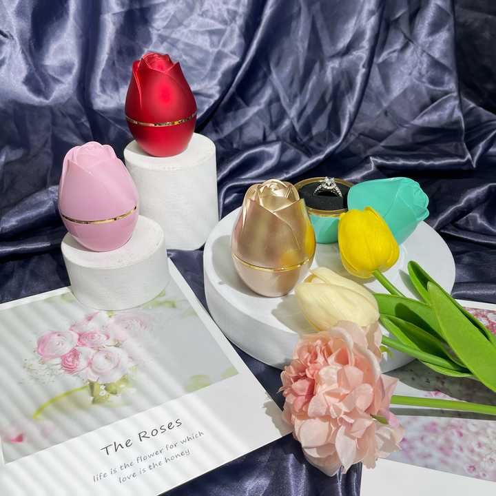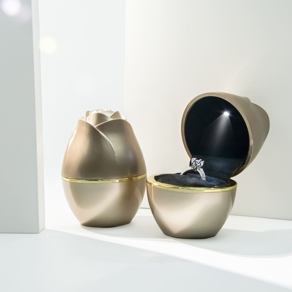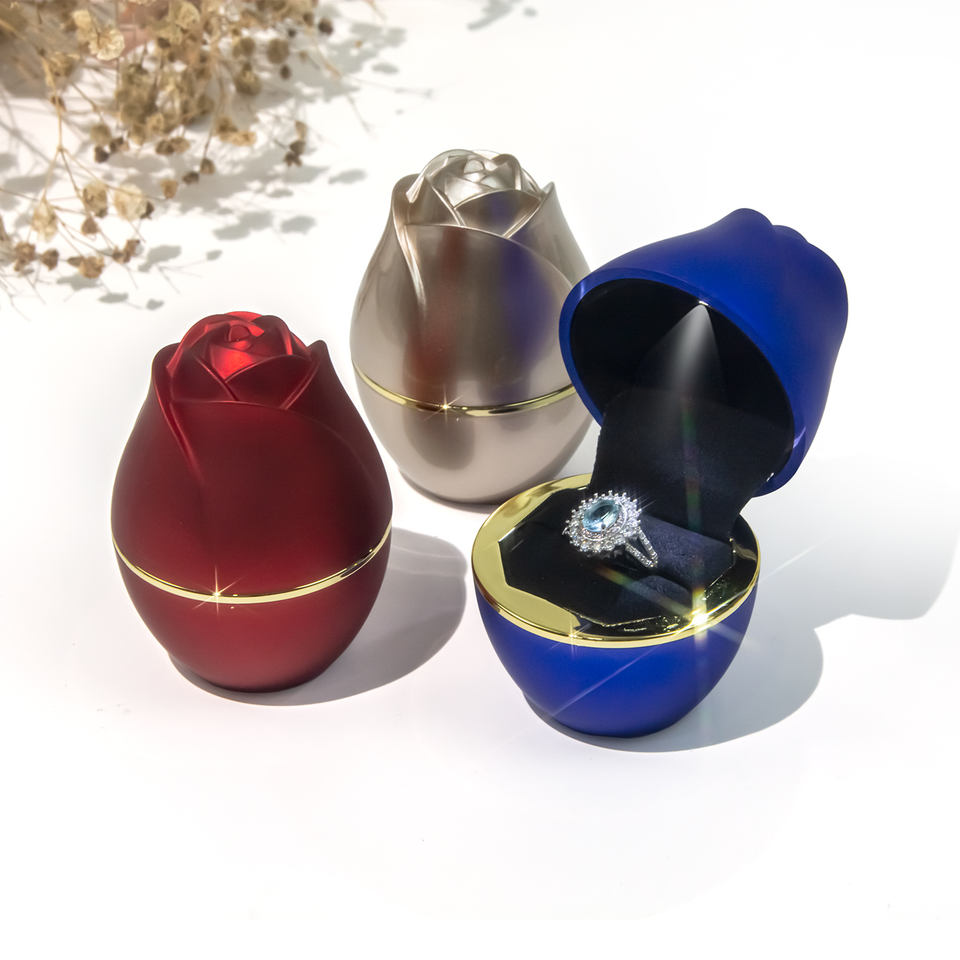 Forte Rose forme Luz LED Fantaisie Bijoux Cas Collier Bague En Diamant Boîte D'emballage Avec Logo Personnalisé