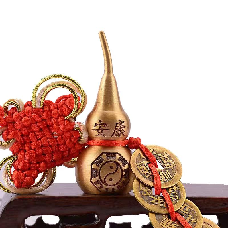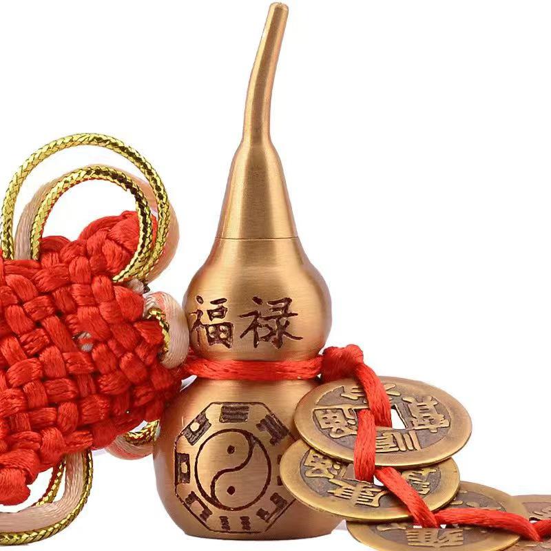 Fortune Chinois Feng Shui Antique Cuivre Huulu Porte-clés-Chance Richesse, Succès Modèle En Métal Marque avec Pièces
