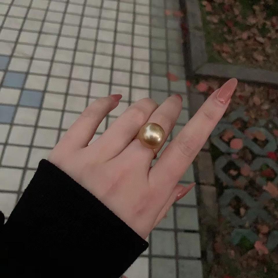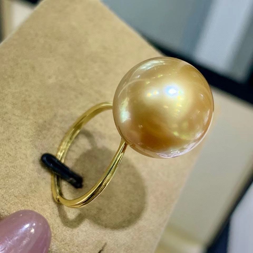 Bague en argent pur 925 Fortune Gold, grande taille 12-13 mm, ronde, avec perle naturelle en or riche et profond, défauts mineurs, boîte cadeau