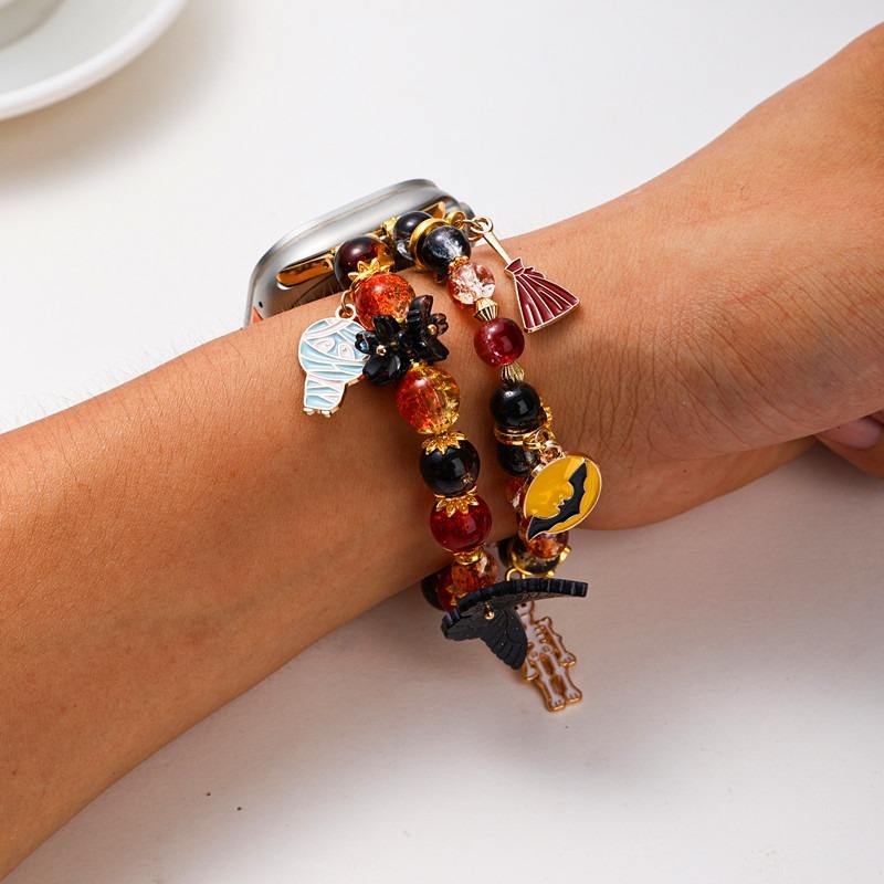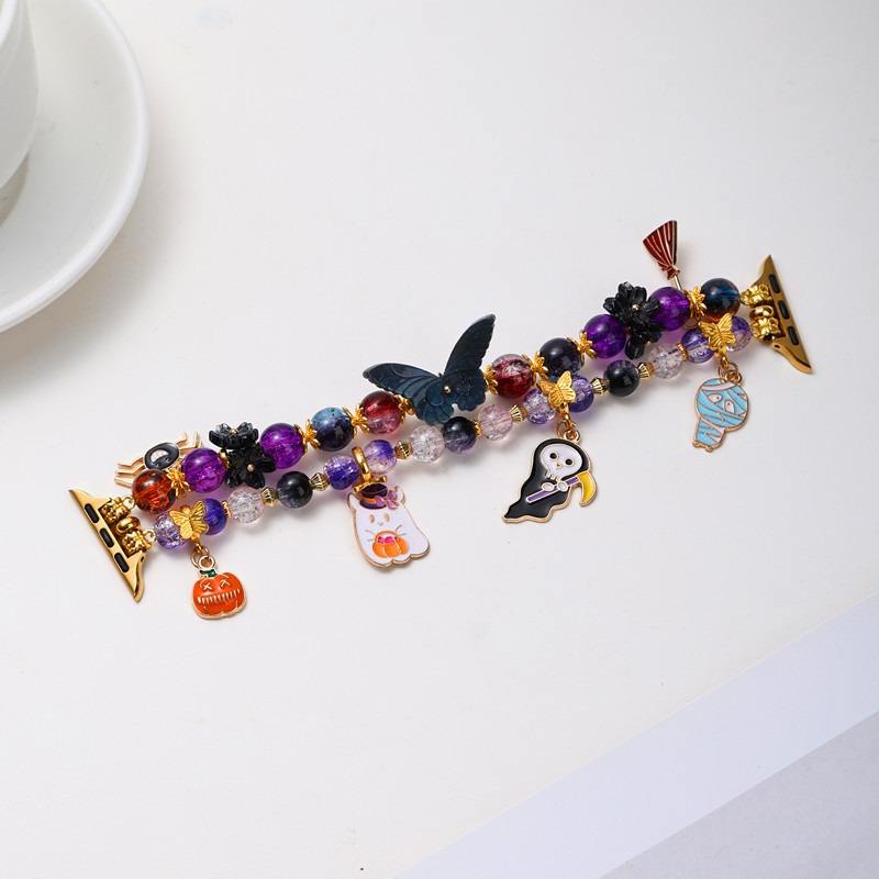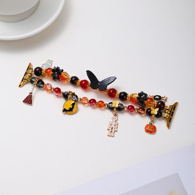 Forwelleny fait à la main cristal perle fantôme citrouille chauve-souris pendentif errant pour Apple Watch série 11 10 émail métal dessin animé femmes perlé