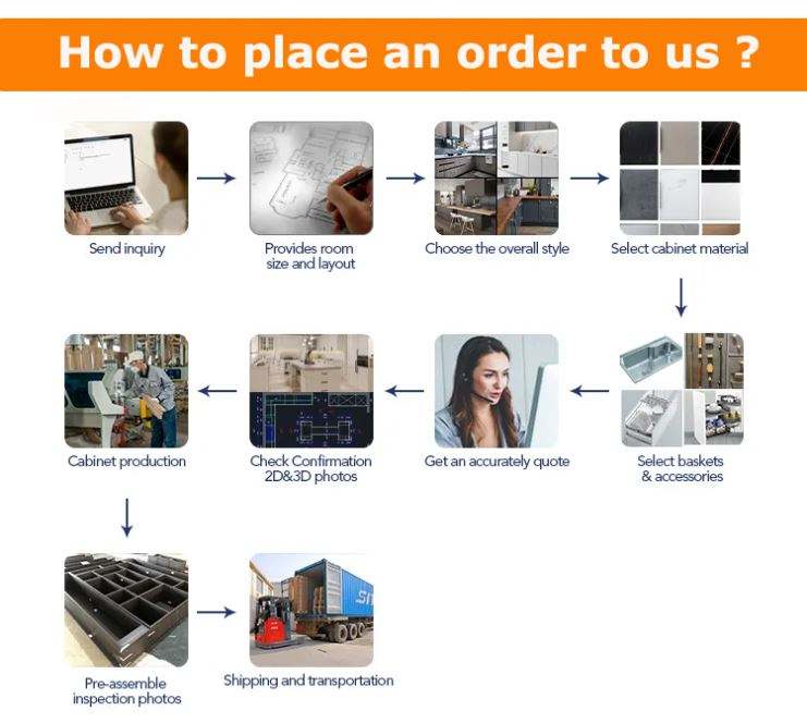 Accessoires:Dosseret, Tiroir panier, Coulisse, Robinet, Poignée et bouton, Charnière, Stockage à plateau tournant, Boîtes de riz, Cabinet de base d'évier, Coup de pied, Conteneur de déchets
