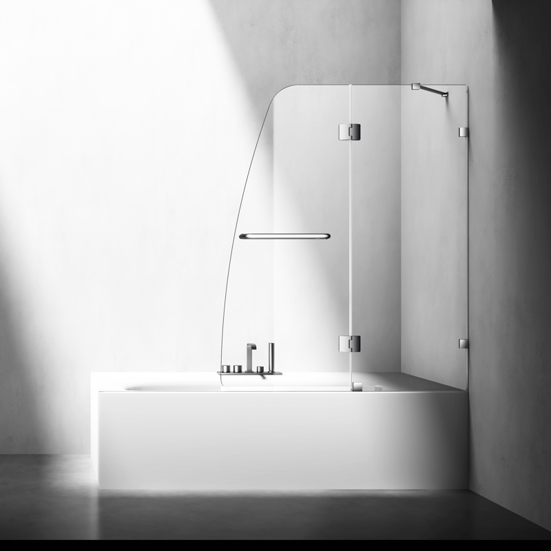 Porte de douche de baignoire sans cadre moderne, sur mesure, bon marché, pour projet hôtelier, avec charnières et verre trempé, fabriquée à Foshan